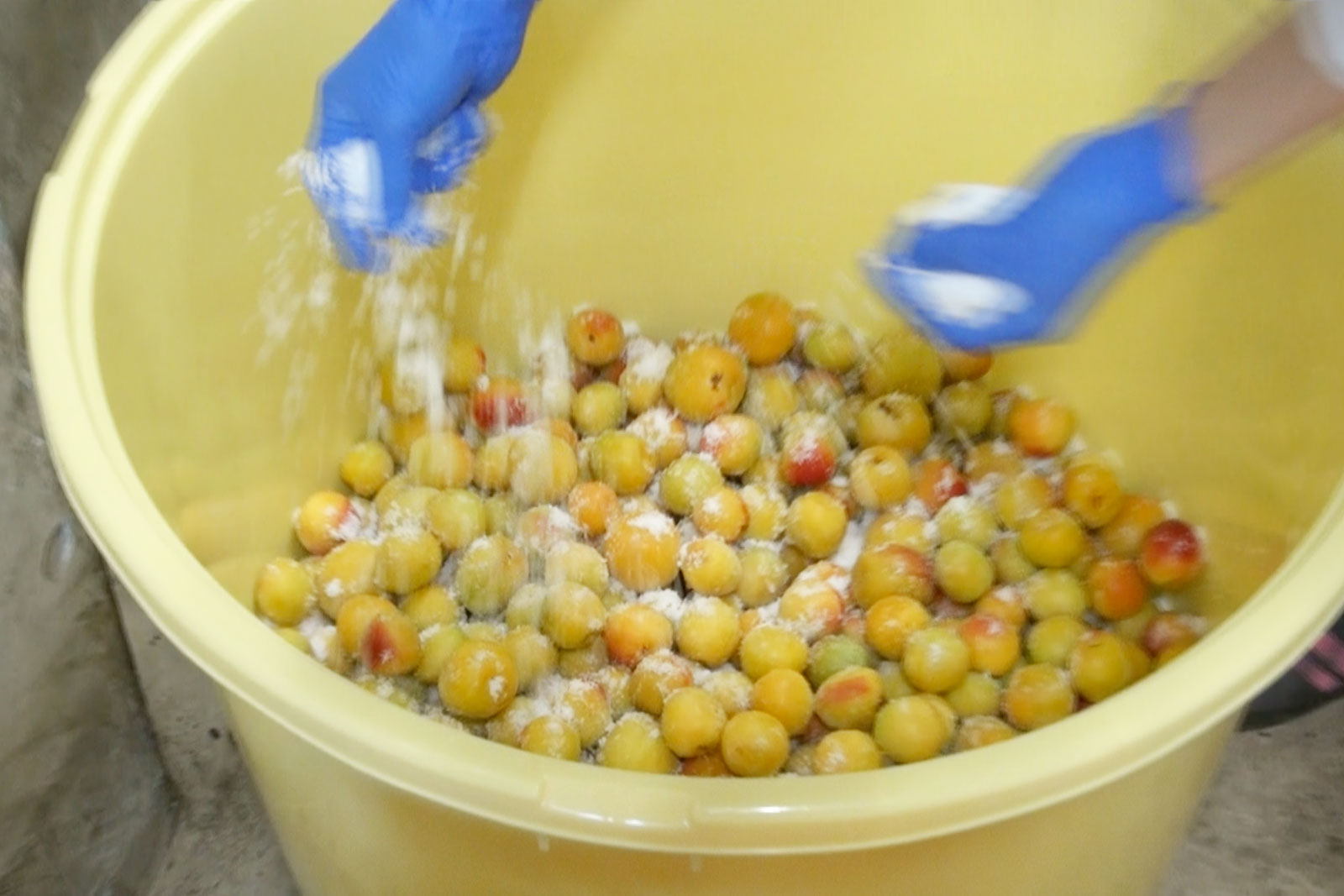 ① 梅200kgを一日かけて丁寧に洗浄