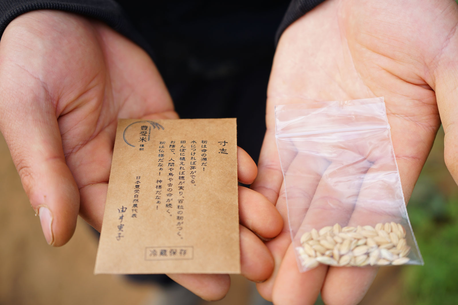 本商品(5kg袋)には、豊受米の籾米を5g同封しています。ご家庭でのバケツ稲栽培や、いざという時のための備えとしてご利用いただけます。